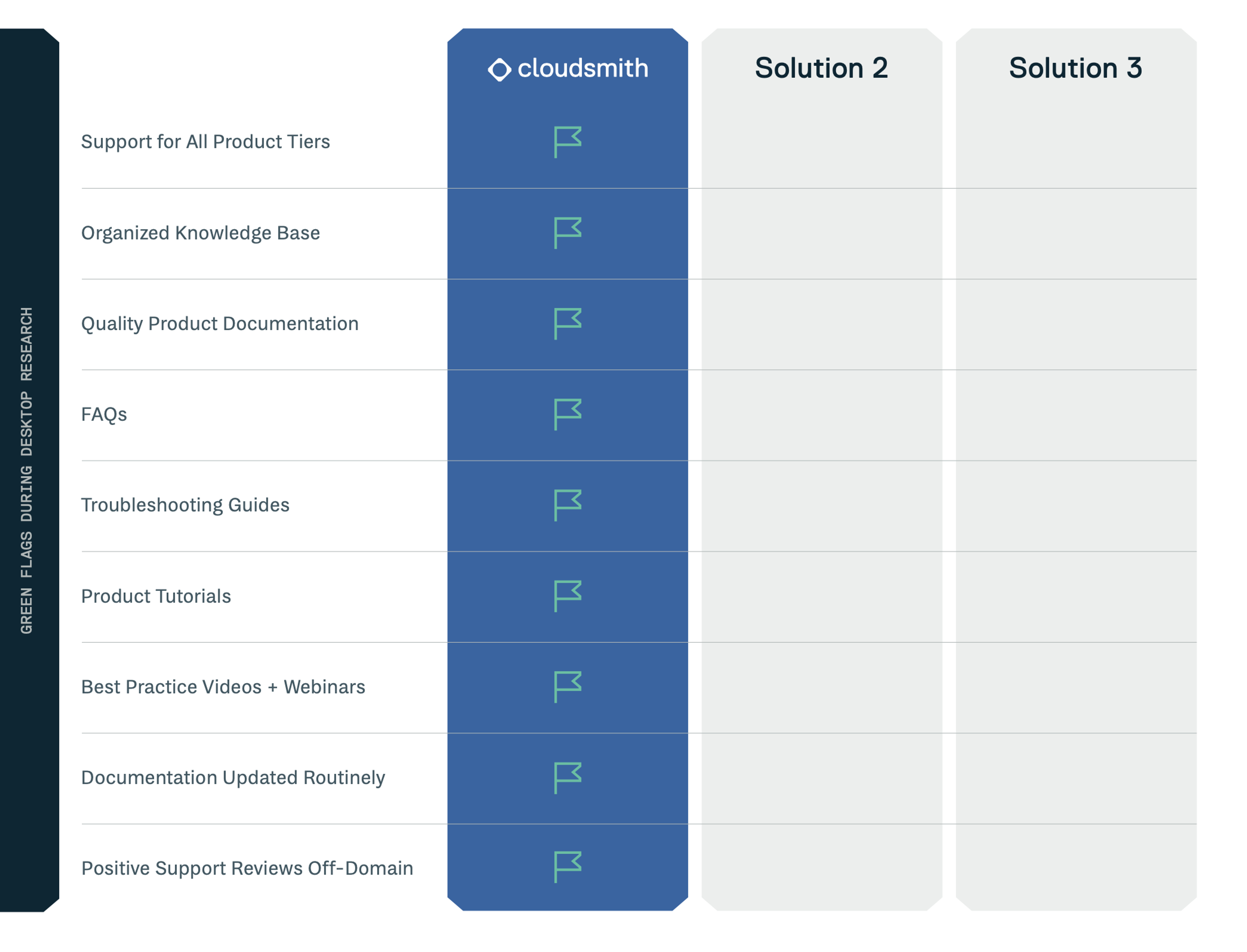 Those are my 12 green flags that an artifact management vendor likely delivers outstanding customer support and has your success as their top priority. Copy and paste this companion checklist into your vendor-comparison matrix to track which platforms get green flags and which get the reds. Then you can ensure the vendor you choose provides the proactive, empathetic, and knowledgeable customer experience necessary for your success.