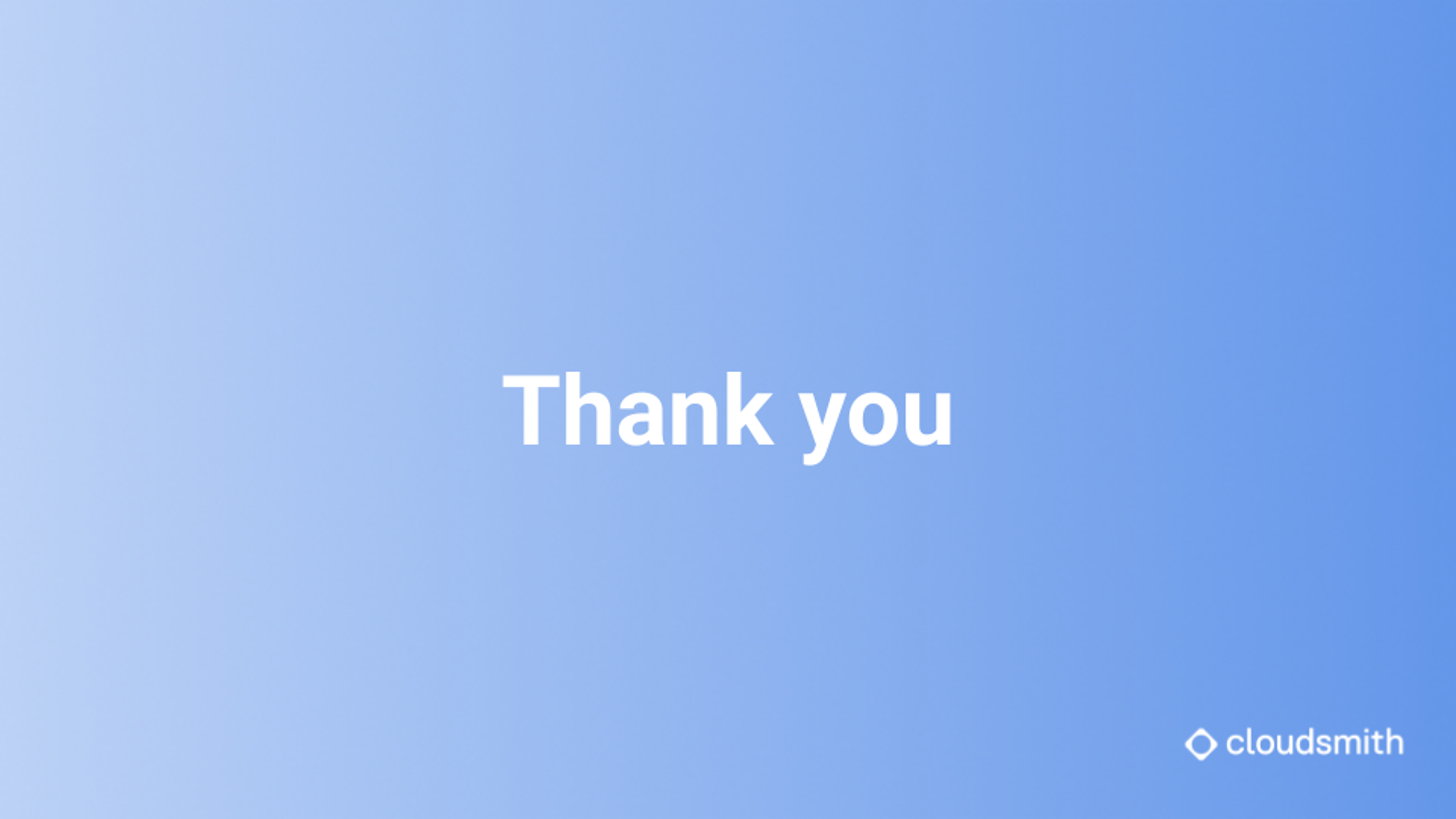 Thank you for choosing Cloudsmith. Here's to more success together! We're excited to continue this journey with you, and we can't wait to see what the future holds.