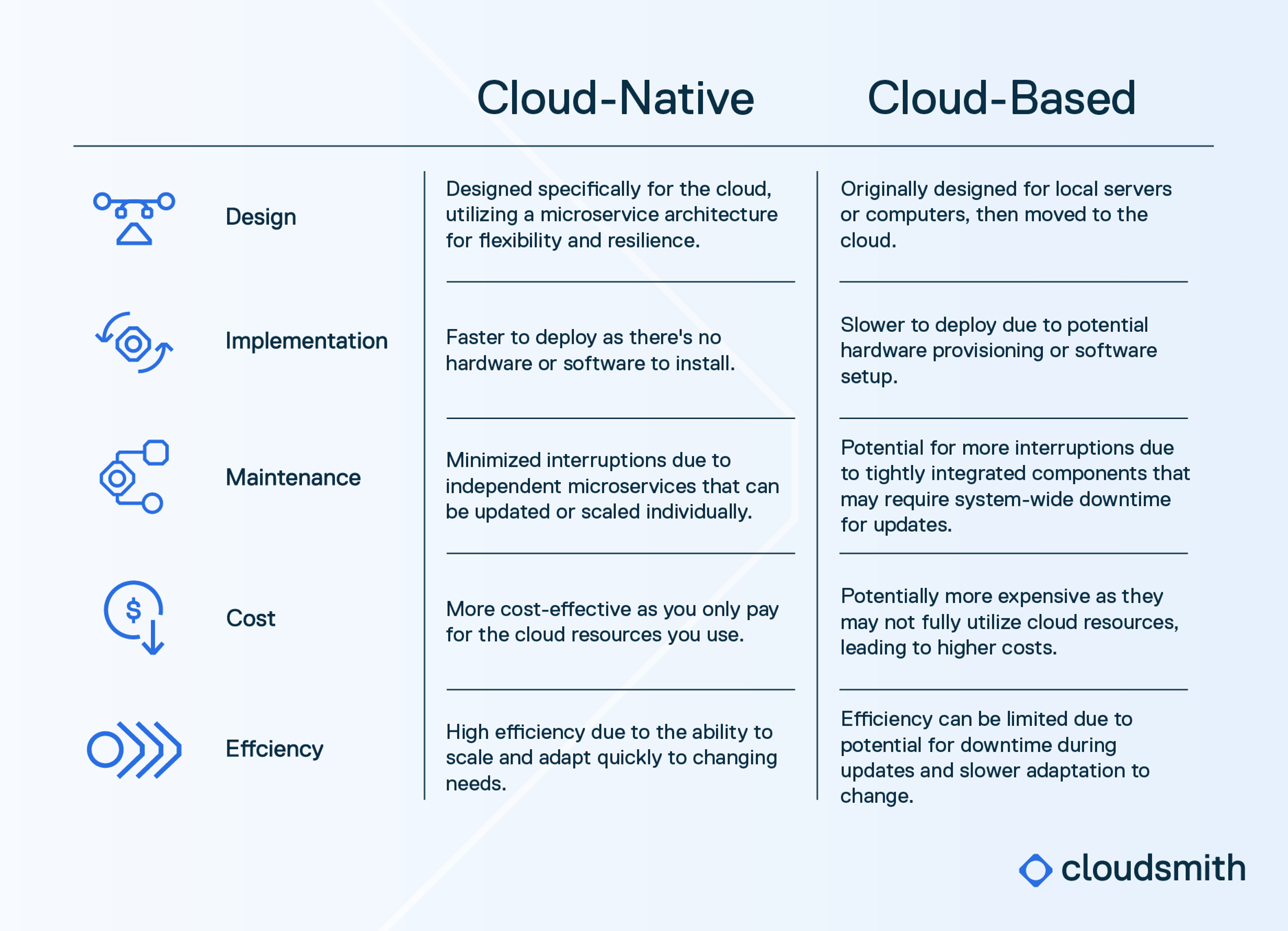 So what's the difference between cloud-native and cloud-based? It all comes down to design philosophy, implementation strategy, maintenance requirements, and cost efficiency