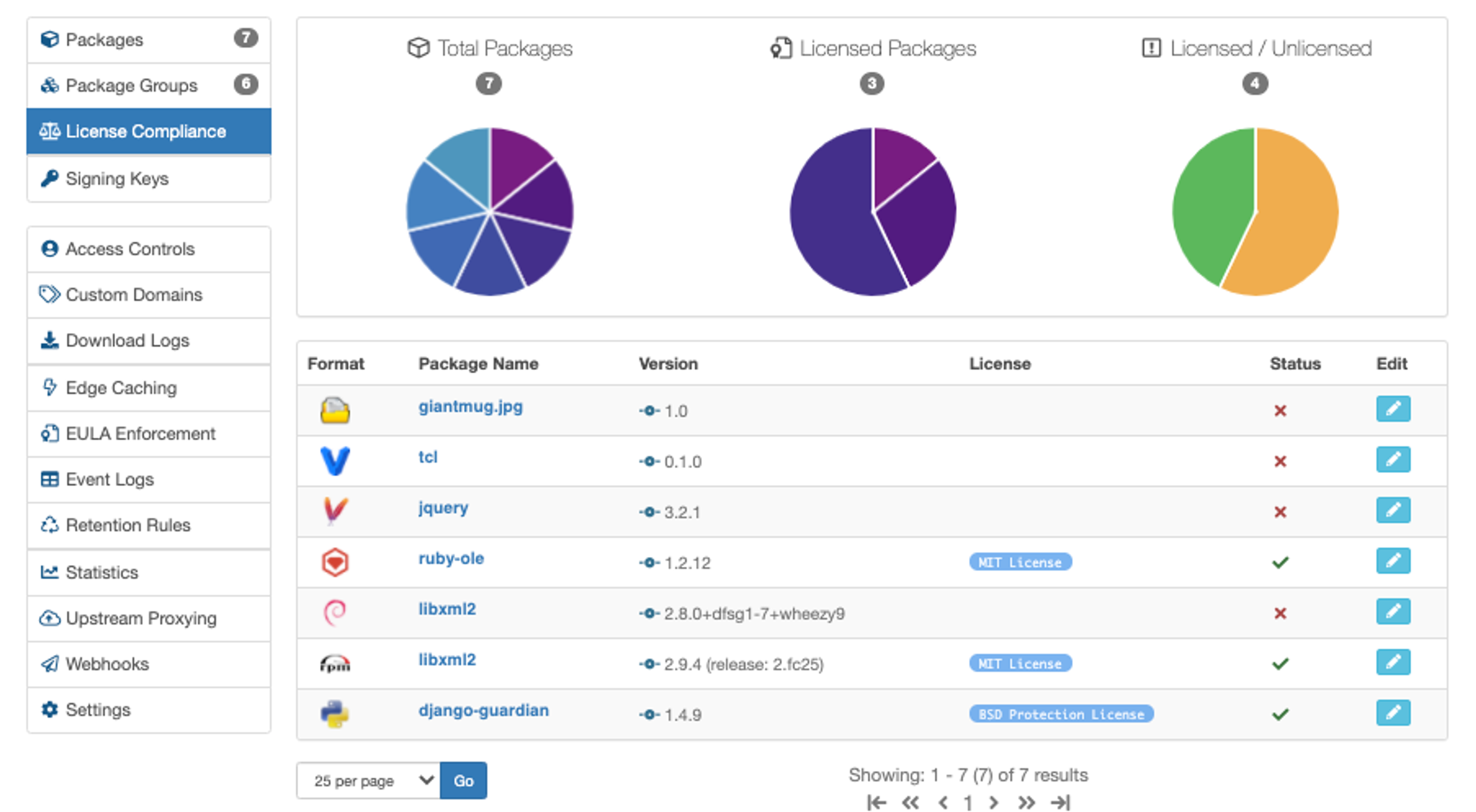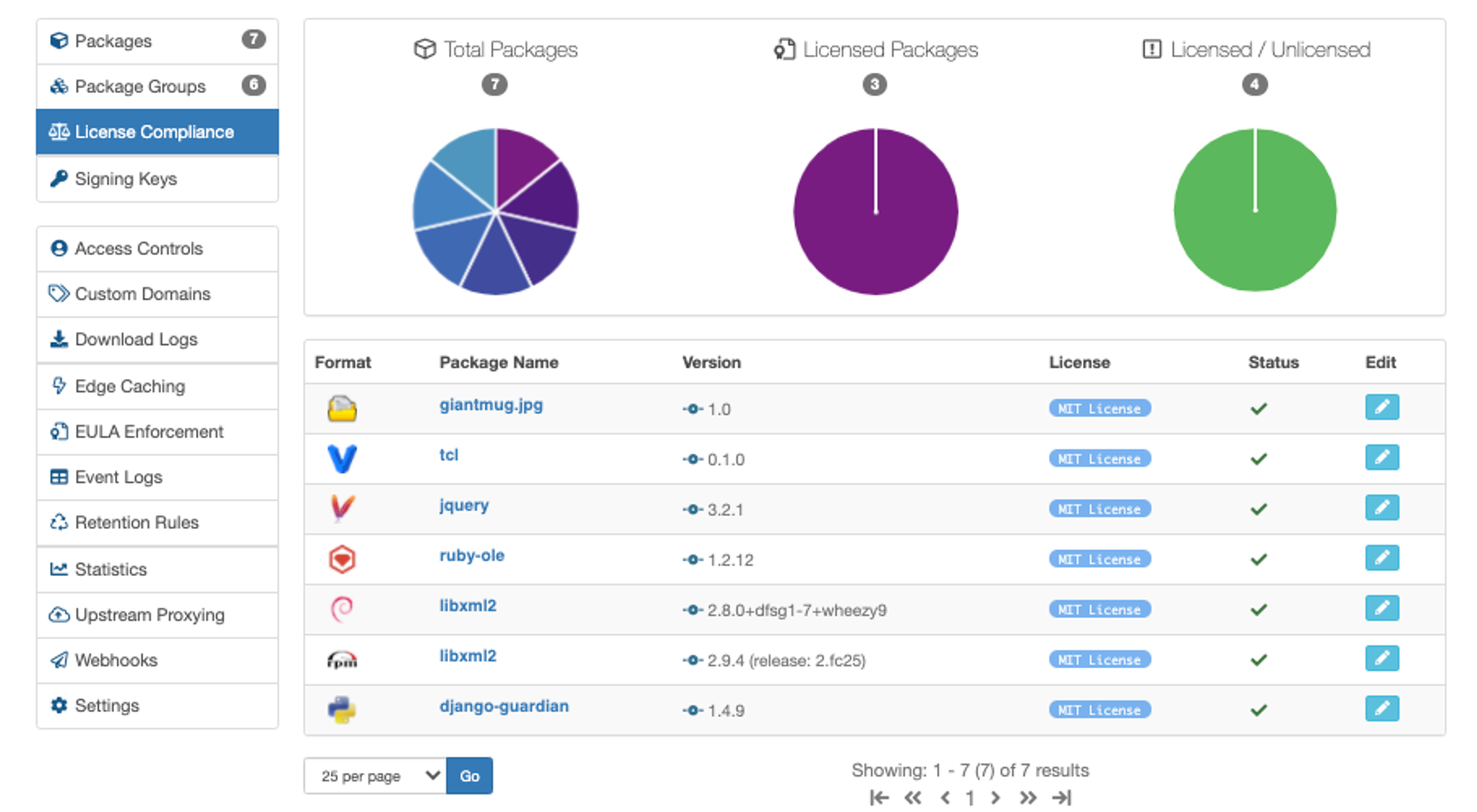 Now, with the help of our License Compliance UI, not only can you update the license associated with a package without needing to modify a package, plus you can also view statistics of how your overall licenses appear across all packages within a repository. Don't believe me? Have a look at the screenshot below: