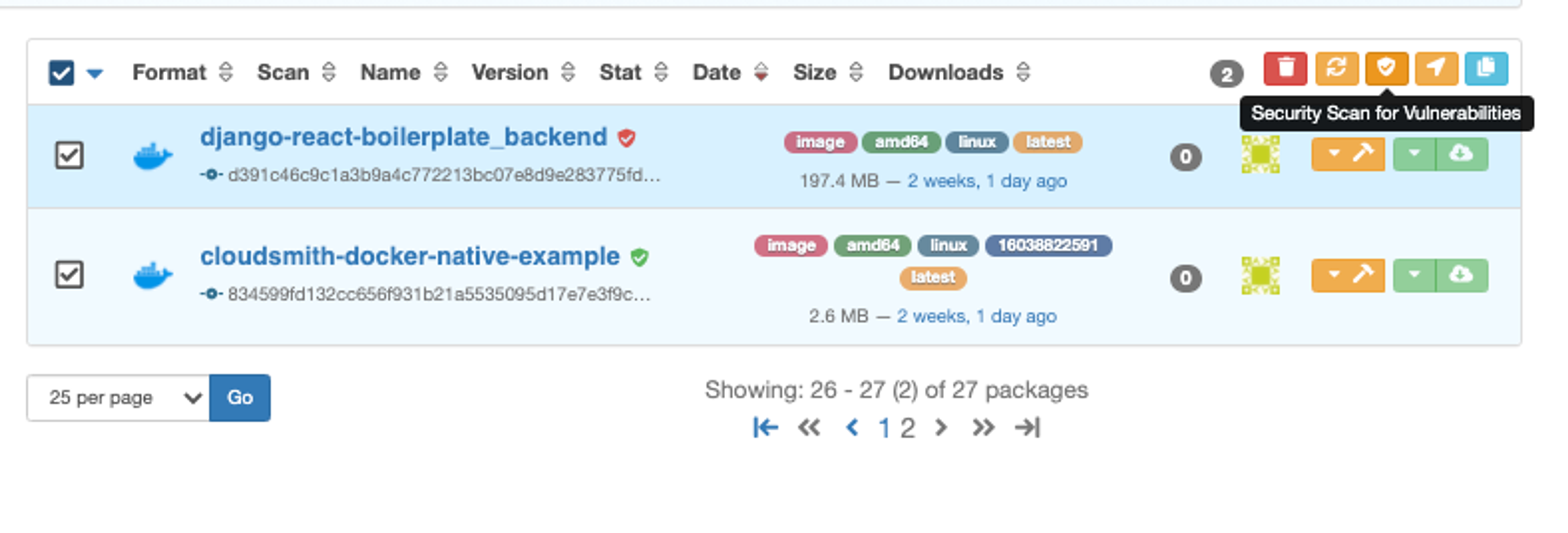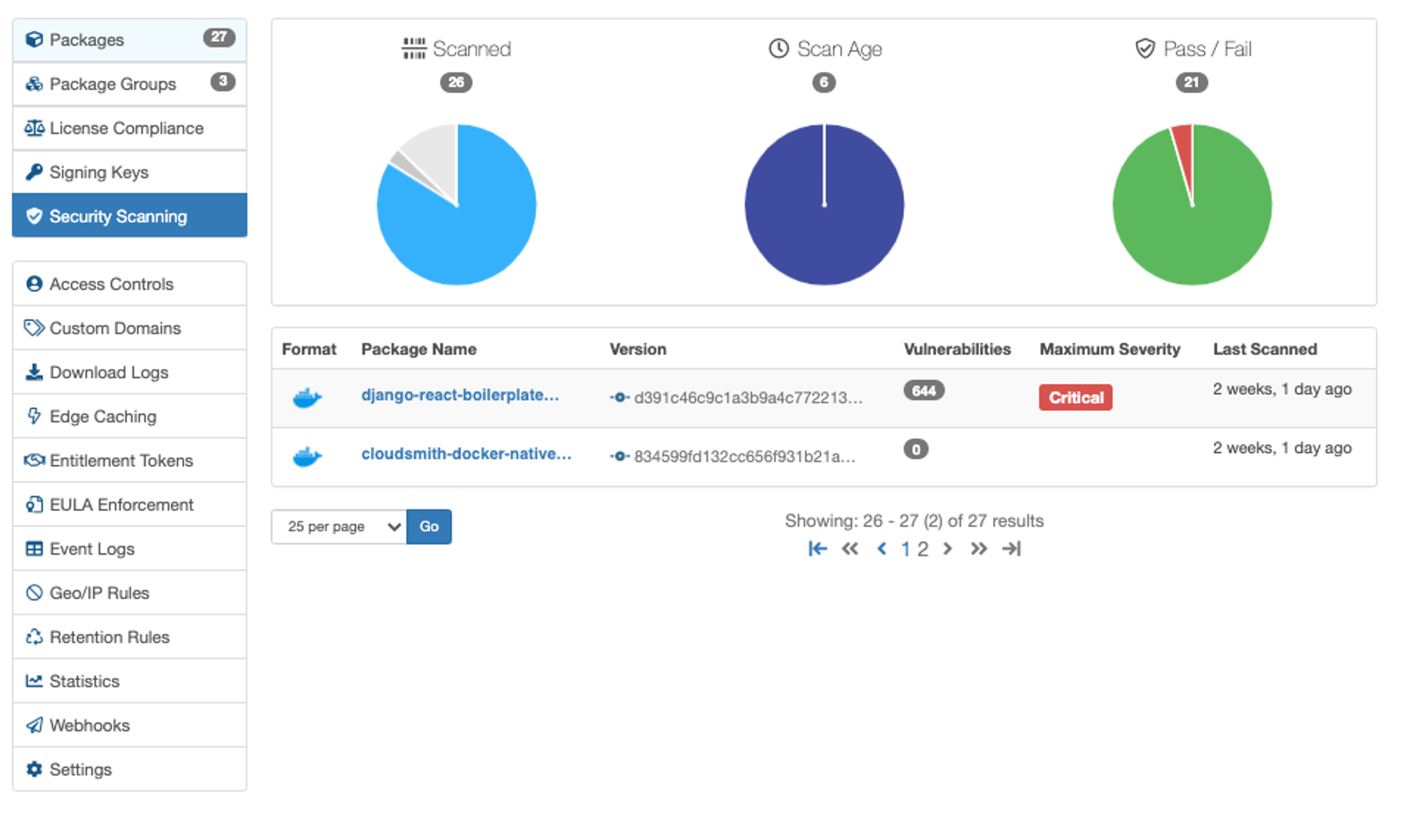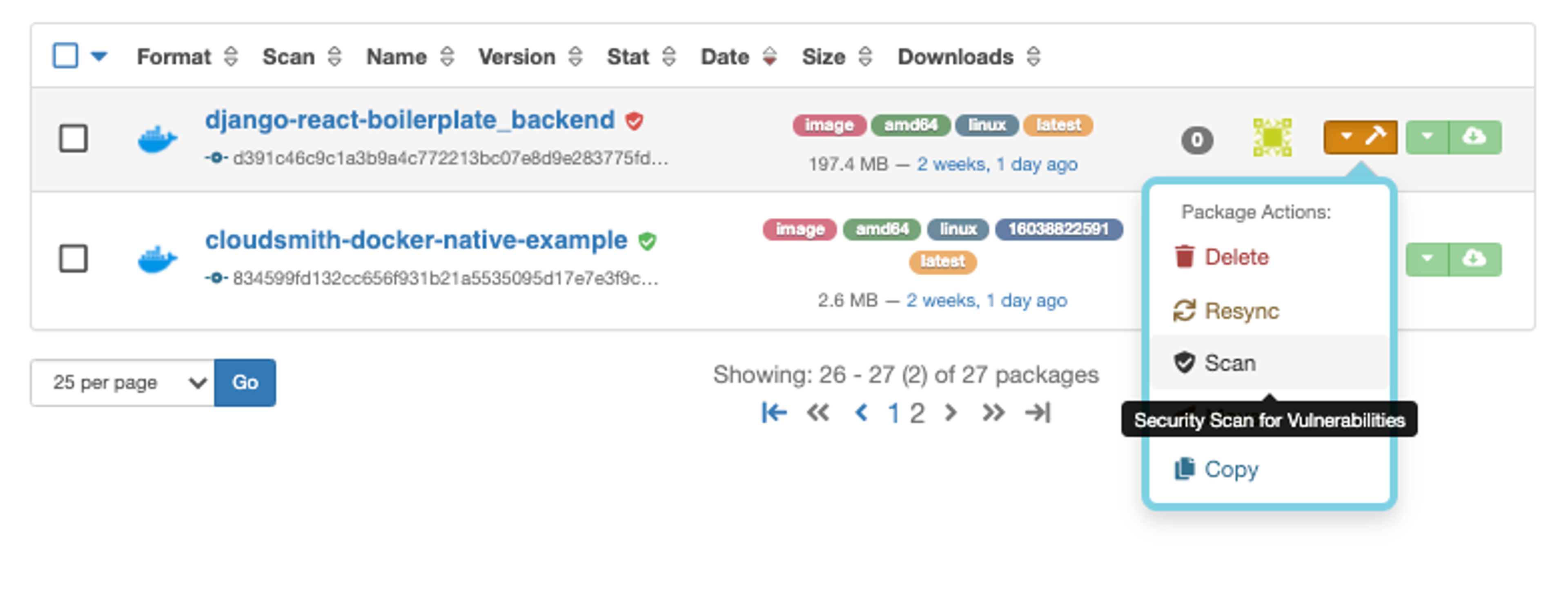 All newly uploaded packages and images get scanned for vulnerabilities as soon as they reach Cloudsmith; however, if for any reason you wish to rerun a security scan, you can do so at any time. Don't worry; we still keep all historic security scan results to track and trace when vulnerabilities get discovered, and they are always accessible via our API should you need them.
