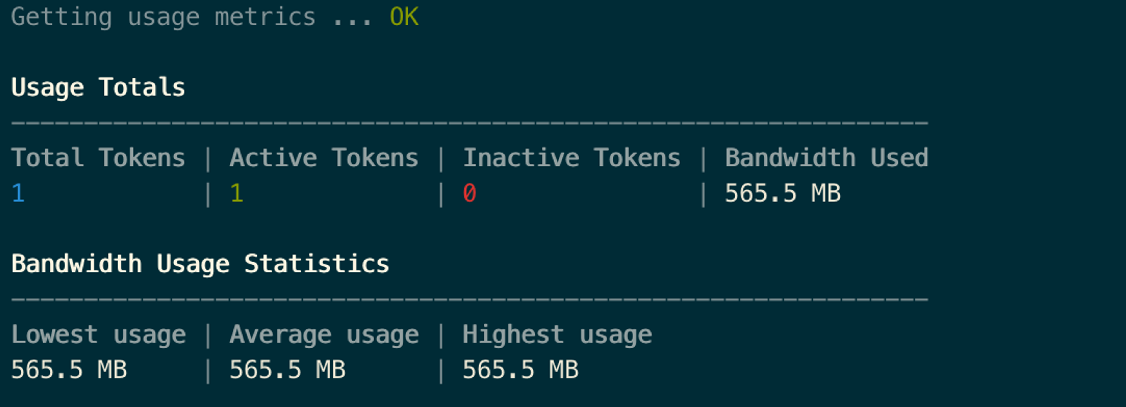 cloudsmith metrics tokens cloudsmith/example --tokens=ZGCV58VqT8Sl
