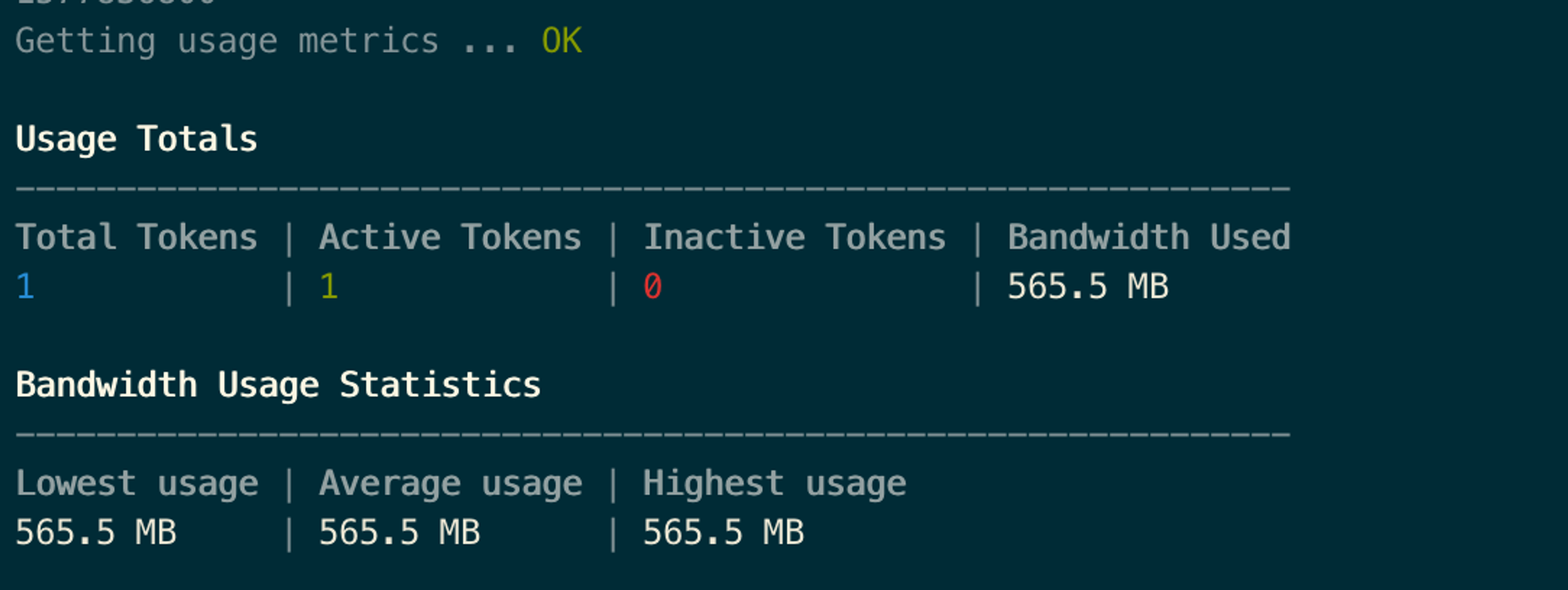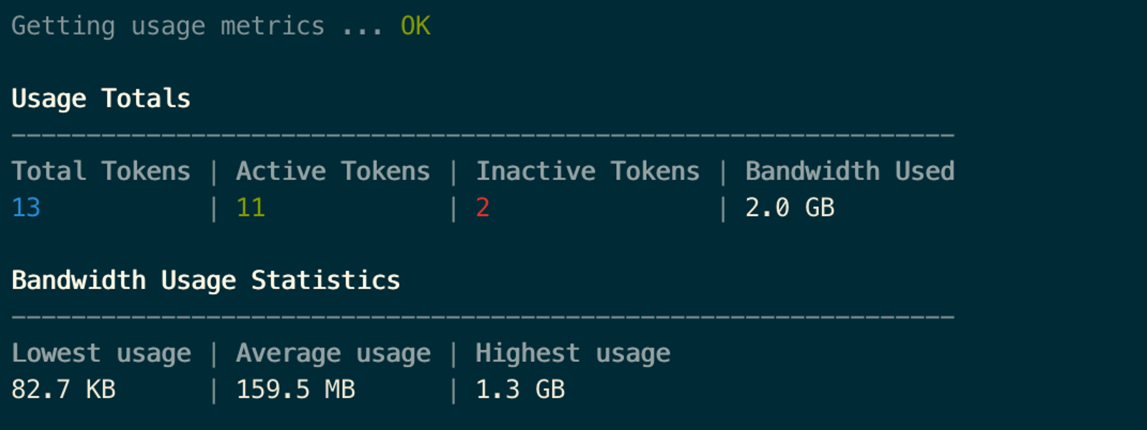 cloudsmith metrics tokens cloudsmith/example --tokens=ZGCV58VqT8Sl